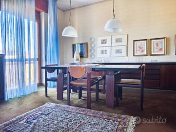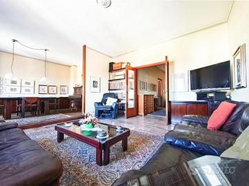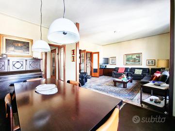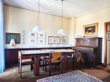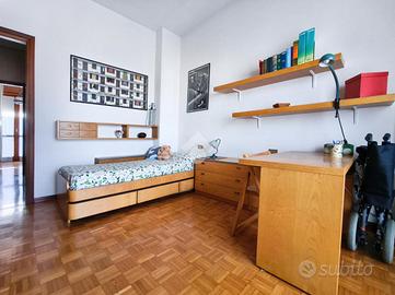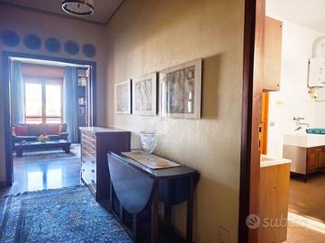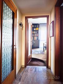 Originariamente concepita come una soluzione di quattro locali, la casa è stata sapientemente trasformata in un ampio trilocale, dove la quarta camera è stata annessa al soggiorno per dare vita a una zona living doppia, di grande impatto visivo e funzionale, impreziosita da una balconata che corre lungo una delle pareti, regalando luce naturale durante tutto l'arco della giornata.