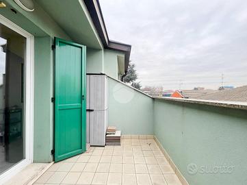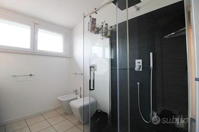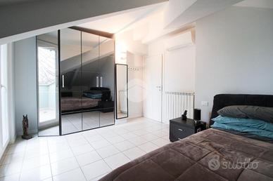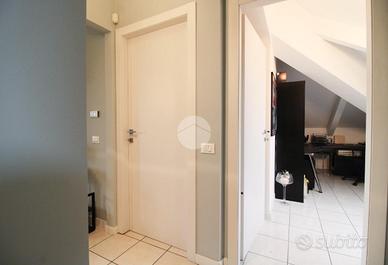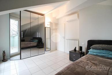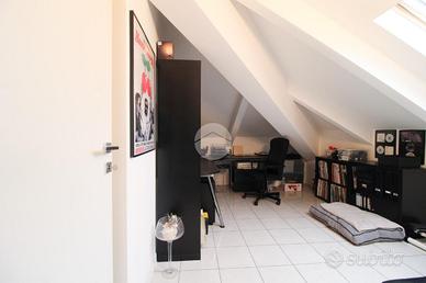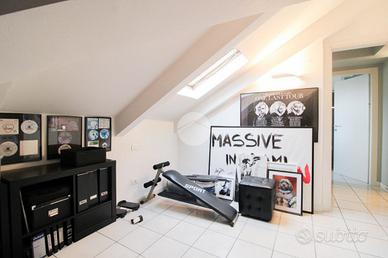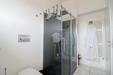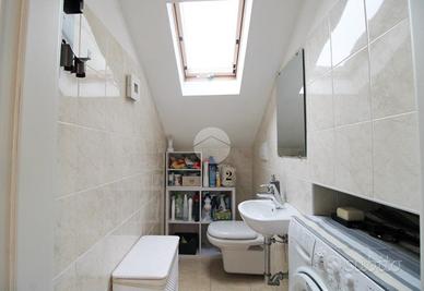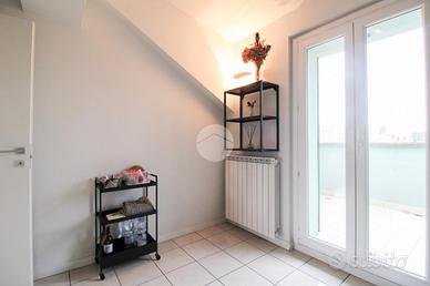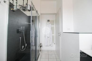 La zona notte accoglie una camera matrimoniale con terrazzo privato e uno studio con lucernario, facilmente trasformabile in seconda camera da letto. Doppi servizi completano l'abitazione: un bagno finestrato con doccia e un secondo bagno con lucernario, entrambi rifiniti con gusto contemporaneo.