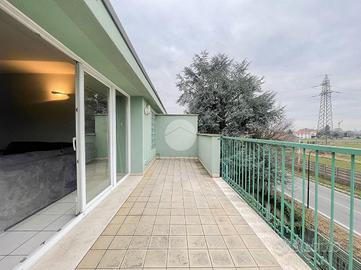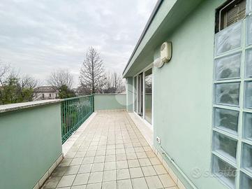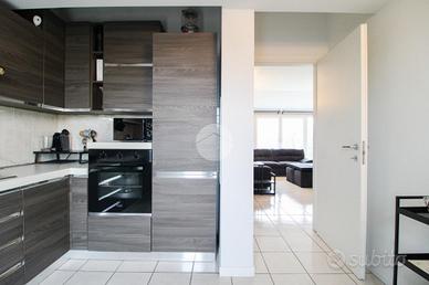 Il soggiorno, ampio e inondato di luce naturale, si apre su uno splendido terrazzo panoramico affacciato sul Parco della Balossa: uno spazio privilegiato per momenti di relax e convivialità all'aria aperta. La cucina abitabile, funzionale e discreta, dispone di un terrazzino di servizio.