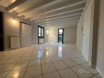 In tranquilla zona centrale e servita, comoda ai principali servizi, proponiamo recente e indipendente trilocale, con collegamento diretto all'interrato compreso di ampio box e taverna/lavanderia. La soluzione caratterizzata dalle ricercate travi a vista sbiancate è composta da zona giorno open space, bagno finemente ristrutturato e due ampie camere. Caldaia nuova a condensazione , cappotto esterno e giardino su due lati e zona notte.