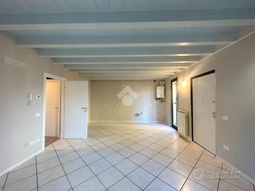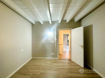 L'abitazione, di circa 100 mq, si distingue per la luminosità degli ambienti e per l'ampia zona giorno open space con cucina a vista, impreziosita da tre grandi finestre che offrono una piacevole vista aperta. La zona notte è composta da due spaziose camere da letto e da un bagno recentemente ristrutturato con materiali di qualità. Le finiture moderne comprendono pavimenti in gres effetto parquet, porte bianche dal design contemporaneo e travi a vista sbiancate che donano eleganza e calore agli ambienti. L'appartamento viene affittato privo di arredi.