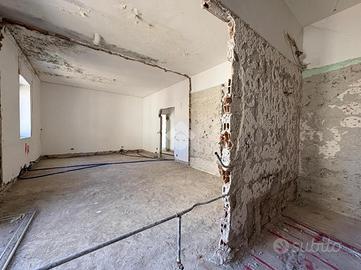 L'immobile è composto da ingresso, soggiorno, cucina, due camere da letto, bagno e balcone, con spazi ampi e ben distribuiti. Sono stati avviati lavori di ristrutturazione mirati al completo rinnovamento dell'appartamento: è già stata effettuata parte delle demolizioni, predisposti alcuni impianti e avviata la ridefinizione degli ambienti. Tuttavia, i lavori si trovano attualmente in fase di sospensione.