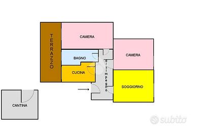 La disposizione interna comprende un ampio soggiorno, ideale per momenti di relax e convivialità, e una cucina funzionale con accesso diretto su comodo terrazzo, perfetto per godere di momenti all'aperto.