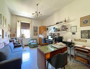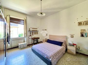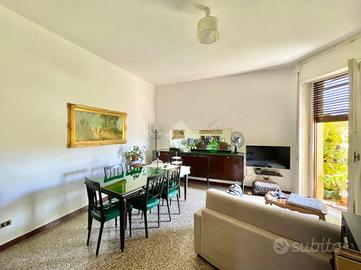 Si prosegue con un ampio soggiorno luminoso con accesso sul balcone collegato alla cucina, due camere da letto ed un bagno finestrato con vasca.