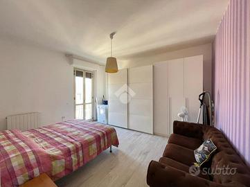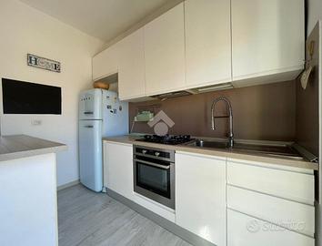 L'immobile, completamente ristrutturato nel 2018, ci accoglie in un soggiorno cucina open space molto funzionale e luminoso, con accesso su un primo balcone.