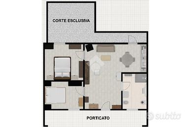 L'immobile vanta un accesso completamente indipendente che ci conuce all'ambiente giorno della casa. Il soggiorno è in open space con una marcata distinzione tra ambiente living e zona cucina adibita ai pasti.