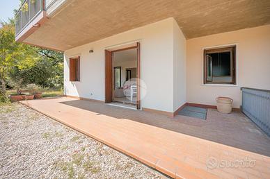 Costermano sul Garda fraz. Marciaga: In ESCLUSIVA, proponiamo un ampio appartamento tri/quadrilocale su due livelli, immerso nella quiete del paesaggio e caratterizzato da una ristrutturazione recente e raffinata. L'immobile, rinnovato circa 4 anni fa con l'impiego di materiali di pregio, si distingue per l'accuratezza e la raffinatezza degli arredi, che conferiscono un tocco di eleganza e comfort in ogni ambiente. La proprietà è arricchita da un grande giardino privato di 300 mq, ideale per momenti di relax in totale privacy, dove è possibile organizzare pranzi e cene all'aperto, immersi nel verde. Questa soluzione rappresenta un rifugio esclusivo dove stile, comfort e funzionalità si incontrano, creando un ambiente perfettamente equilibrato. L'immobile è ideale per chi cerca la tranquillità senza rinunciare alla comodità: comodo al Lago di Garda, campi da golf e alle piste ciclabili, offre la possibilità di vivere a stretto contatto con la natura e allo stesso tempo essere ben collegati ai principali servizi. 'Si prega di notare che, nonostante l'impegno profuso per garantire l'accuratezza e la correttezza delle informazioni presentate, il contenuto non ha valore contrattuale.'