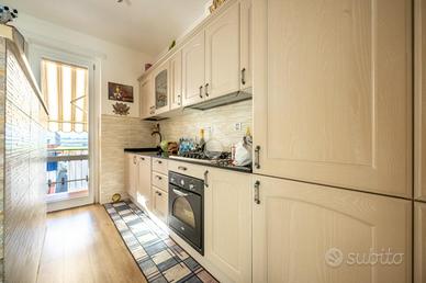 La zona giorno è composta dal soggiorno con angolo cottura, con accesso diretto al primo balcone, ideale come sfogo esterno.