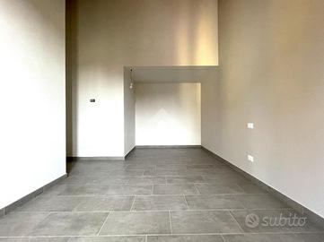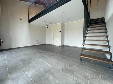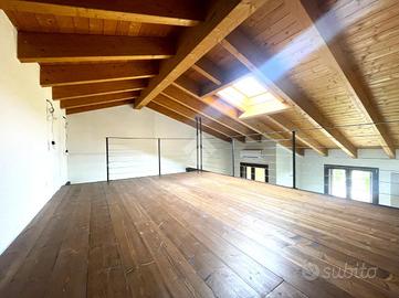 Appartamento al primo ed ultimo piano con ingresso nella zona giorno openspace con cucina a vista in affaccio sul balcone e collegata al soppalco di 110 mq.
