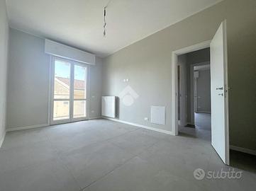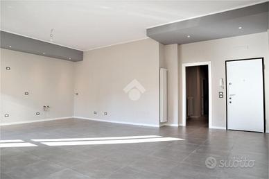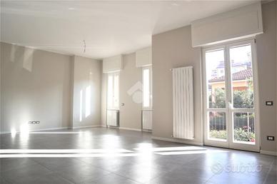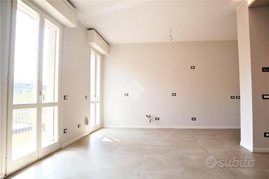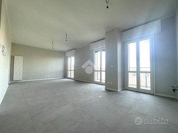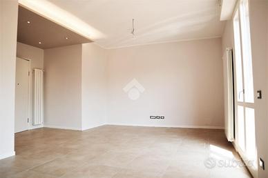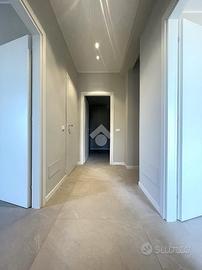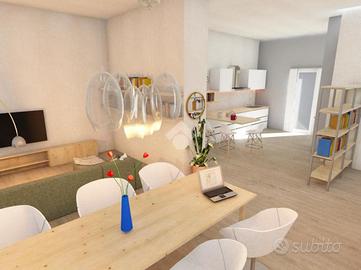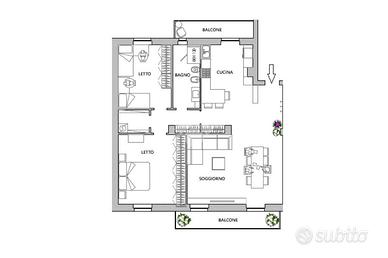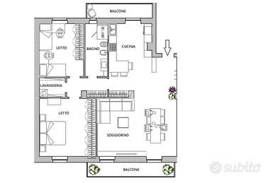 Ingresso sul soggiorno in affaccio sul balcone, cucina indipendente in affaccio sul secondo balcone, una camera da letto matrimoniale, una camera da letto doppia, bagno e lavanderia.