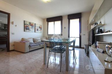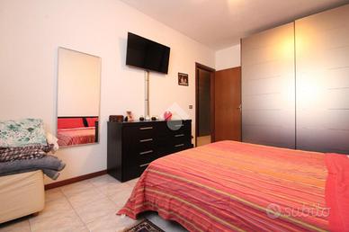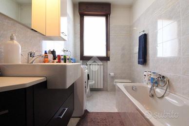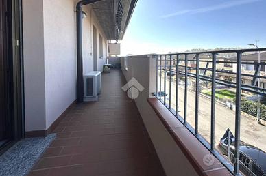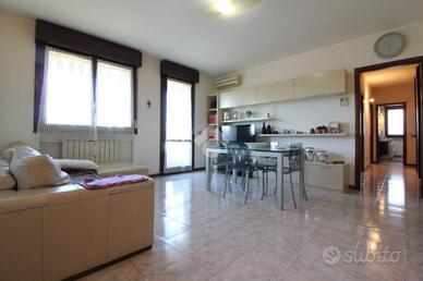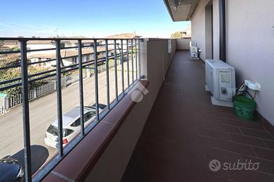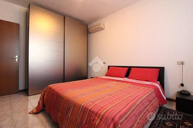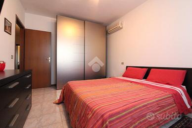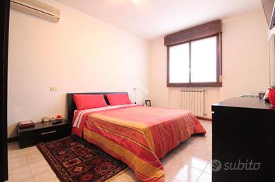 Grande e luminoso appartamento di 95 mq composto da ingresso, soggiorno e cucina separati con accesso diretto al balcone di 20 mq. Disimpegno con spazio per armadio a sei ante. Due camere da letto e bagno con vasca e doccia. Al piano terra troviamo il box di 20 mq e la cantina. L' immobile è completo di zanzariere, aria condizionata e tenda parasole.