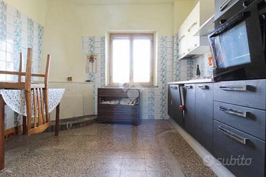 Dall'ingresso sul disimpegno si sviluppa l'abitazione che presenta (ad oggi) una cucina con camino e balcone ed un ampio e luminoso soggiorno.