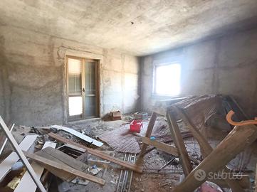 Appartamento posto al secondo piano di un edificio di tre piani, situato in zona comoda e ben servita, nelle vicinanze dei principali servizi. Al piano terra, sempre di proprietà, è presente un ampio e luminoso locale magazzino con doppio accesso: sia dall'esterno, con possibilità di parcheggiare una o due auto, sia dall'interno tramite il vano scala. L'appartamento è attualmente allo stato rustico e presenta una predisposizione interna con cucina, due camere da letto, bagno e balcone su un lato del fabbricato. L'immobile gode di doppia esposizione. È possibile ridistribuire gli spazi interni in modo diverso, recuperando anche la metratura del corridoio per ottimizzare la disposizione degli ambienti. Soluzione ideale sia come abitazione principale sia come investimento, con la possibilità di ottenere una doppia rendita affittando separatamente l'appartamento e il locale magazzino come deposito.