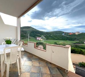 S'ARCHITTU -VIA DELL'ASPARAGO Nella marina di Cuglieri proponiamo in vendita in un mincondominio senza spese condominiali un'appartamento al primo piano con doppio ingresso indipendente veranda e cortile. L'immobile è internamente composto da un primo ingresso da Via Dell'Asparago, mediante una scala esterna che conduce ad una veranda arredabile dove troviamo una porta finestra che conduce direttamente all'interno della casa. Composta da soggiorno con angolo cottura e camino a legna, disimpegno che conduce al bagno con doccia con areazione forzata, camera matrimoniale, ulteriori altri due ambienti con destinazione d'uso locale di sgombero, camera singola con letti a castello con comunicazione diretta sul cortile dove è situata la zona lavanderia e dove troviamo un'ulteriore ingresso indipendente da Via del Lentischio. Termocondizionato caldo/freddo mediante Split. Infissi in legno con vetrocamera. Boiler elettrico per l'acqua calda sanitaria.