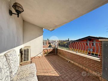 In una zona tranquilla e ben servita proponiamo un accogliente attico trilocale situato al secondo e ultimo piano di un piccolo condominio con poche unità. L'appartamento si distingue per la luminosità e la piacevole distribuzione degli spazi: il doppio soggiorno offre un ambiente conviviale e accogliente, mentre la cucina separata e abitabile garantisce praticità e comfort nella vita di tutti i giorni. La zona notte comprende due camere da letto e un bagno. Il vero punto di forza dell'immobile sono i tre ampi terrazzi, perfetti per rilassarsi all'aperto, cenare nelle sere estive o semplicemente godersi un momento di tranquillità. A completare la proprietà troviamo un garage con basculante sezionale e l'aria condizionata, che assicura comfort in ogni stagione. Questo attico rappresenta la soluzione ideale per chi cerca un ambiente curato, riservato e comodo ai servizi, con spazi esterni che rendono la casa ancora più piacevole da vivere ogni giorno.