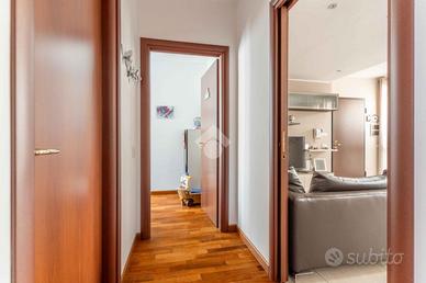 Ingresso su Soggiorno con Cucina a Vista, 2 Spaziose Camere da Letto, Doppi Servizi e un Giardino/Cortile di proprietà di Mq 20. Completano la proprieta' e sono inclusi nel prezzo un generoso Box Singolo di Mq 18 e una comoda Cantina di Mq 5.