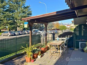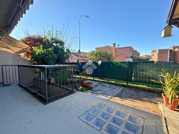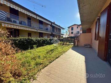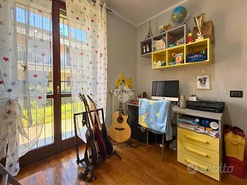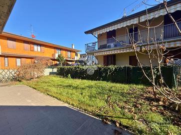 L'ingresso conduce a una luminosa zona giorno, dove cucina e soggiorno si fondono in un ambiente accogliente e ben distribuito. Il disimpegno accompagna alla camera matrimoniale, ampia e confortevole, e alla camera singola, valorizzata da una porta finestra affacciata sul giardino privato. Completa la zona notte un bagno finestrato dotato di vasca.