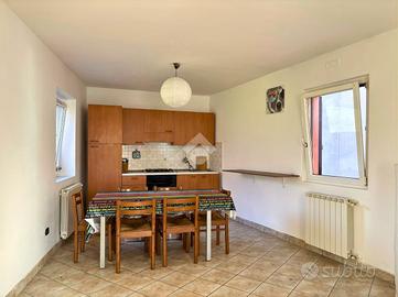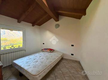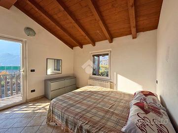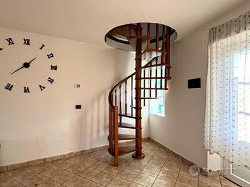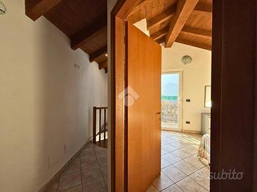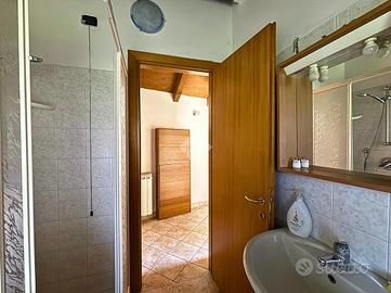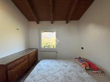 L'abitazione si sviluppa su più livelli e accoglie al piano terra una spaziosa cantina con servizio/lavanderia, attualmente utilizzata come piccolo appartamento, perfetta come locale accessorio o spazio di supporto alla zona abitativa principale. Il primo e secondo piano ospitano un luminoso trilocale collegato internamente da una comoda scala a chiocciola che unisce la zona giorno e la zona notte in un insieme armonioso e pratico. Il piano secondo, mansardato e impreziosito da travi a vista, regala un'atmosfera accogliente, ideale come zona notte. Gli ambienti sono ben distribuiti e caratterizzati da una piacevole luminosità naturale, con due balconi che offrono scorci aperti, perfetti per momenti all'aperto.