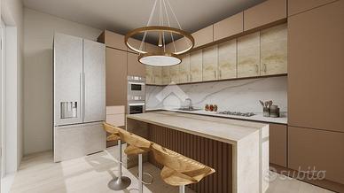 L'ingresso conduce a un accogliente soggiorno, piacevole e ben proporzionato, collegato alla cucina in modo armonioso e funzionale, così da creare un ambiente conviviale e pratico nella vita di tutti i giorni. Entrambi gli spazi godono dell'accesso diretto al primo balcone abitabile, ideale per momenti di relax all'aperto o per pranzi e cene nella bella stagione.