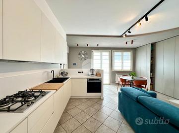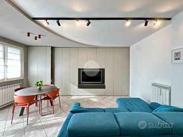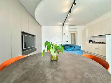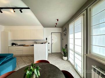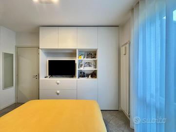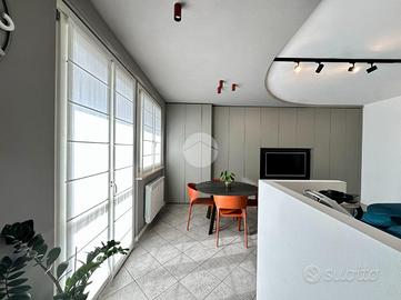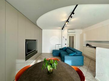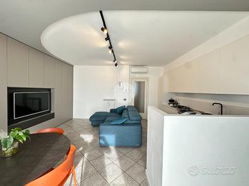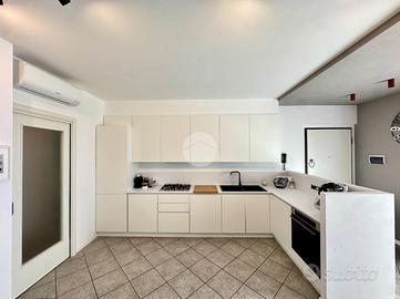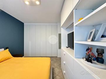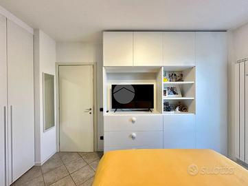 Il portoncino blindato immette direttamente nella luminosa zona giorno. l'ambiente è stato sapientemente distribuito e strutturato grazie ai mobili che delimitano la zona giorno e la zona cucina. Una bouserie occuoa tutta la parete del soggiorno ed nasconde sia le armadiature che l'incasso della televisione. La cucina ad angolo è delimitata dal cartongesso. Una finestra ed una porta finestra affacciano sul terrazzo coperto.