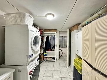 Al piano interrato la cantina è predisposta per essere utilizzata come lavanderia e accede direttamente nel box, doppio in larghezza e con le due basculanti autonome e motorizzate. Tutto il locale del piano interrato è completamente piastrellato.
