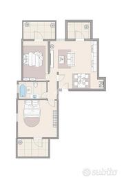 L'appartamento si trova al primo piano e si compone di ampio soggiorno con angolo cottura provvisto di terrazzino. Nella zona notte troviamo una camera da letto matrimoniale dotata di balcone, seconda camera da letto anch'essa dotata di proprio terrazzino e servizio finestrato.