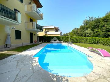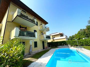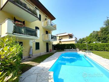 In piccolo contesto con piscina situato a metà strada tra Rivoltella e Sirmione, appartamento di comoda metratura al primo piano con posto auto di proprietà.