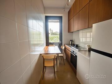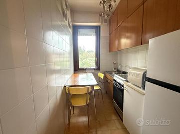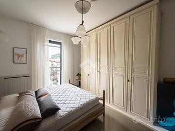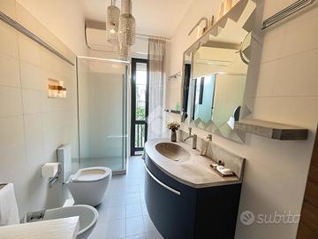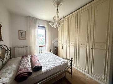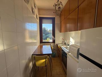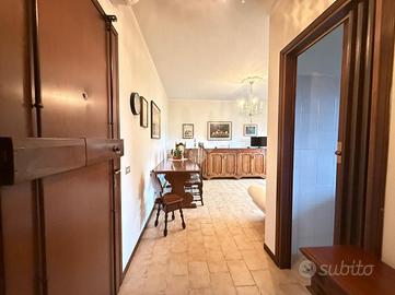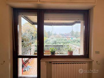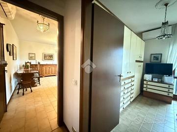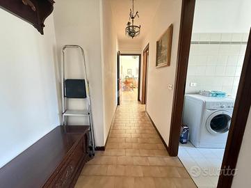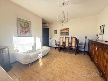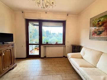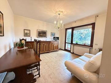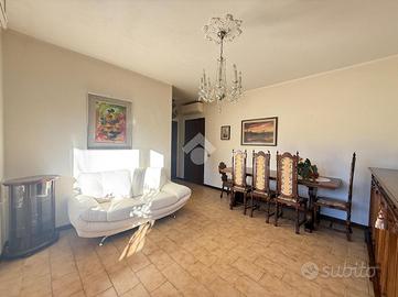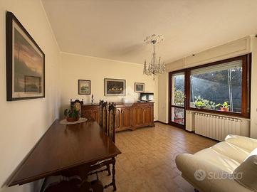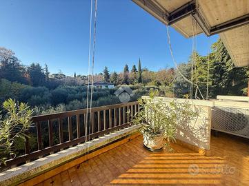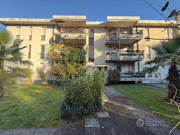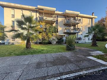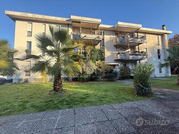 Inserito in piccola palazzina, ubicata in zona molto strategica, comoda al centro, al lago, ai supermercati ed ad ogni tipo di servizio e negozio, appartamento, con bel terrazzo con vista panoramica, aperta e sul verde. La palazzina è dotata di ascensore, di bel parco condominiale e di comodi spazi adibiti a posto auto. L' appartamento si caratterizza per la presenza del grande terrazzo, dal quale si gode di bella vista aperta sul panorama. L' ingresso dell' immobile apre direttamente sulla zona giorno, affacciata sul loggiato esterno, al quale si accede attraverso grande porta finestra. La cucina è separata dal living e provvista di comoda finestra. La zona notte ospita le due camere (entrambe dotate di grande porta finestra che garantisce grande luminosità agli ambienti) e il servizio finestrato. L' appartamento viene venduto completo di aria condizionata e si caratterizza per l'ottima esposizione alla luce naturale. Al piano seminterrato sono presenti il garage e la cantina.
