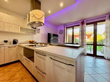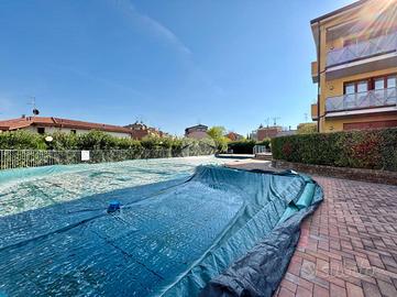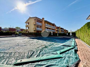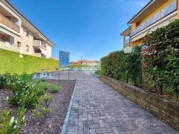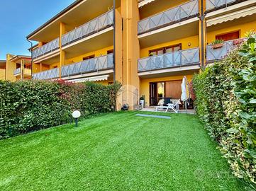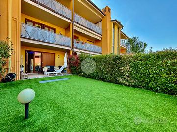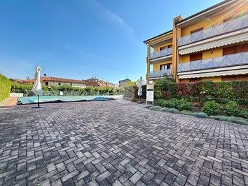 In recente residence con piscina ubicato a poca distanza dalla Spiaggia d'Oro e dal centro di Desenzano, proponiamo in vendita appartamento trilocale al piano terra con doppio giardino privato. L'appartamento si apre su una luminosa zona giorno con cucina a vista e accesso diretto al primo giardino, ideale per vivere al meglio gli spazi esterni e godere di un piacevole scorcio di vista lago. La zona notte, ben distribuita, comprende due camere da letto con uscita sul secondo giardino, perfetto per chi cerca privacy e comfort, oltre a un bagno con doccia recentemente ristrutturato. Completa la proprietà un comodo box auto al piano interrato, facilmente raggiungibile tramite ascensore. L'immobile è dotato inoltre di condizionatori Daikin. Soluzione ideale come prima casa, casa vacanze o investimento ad alta resa!
