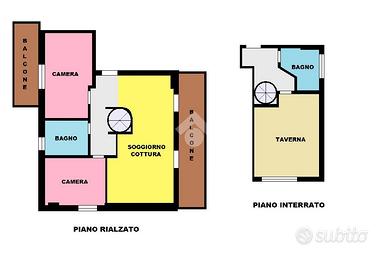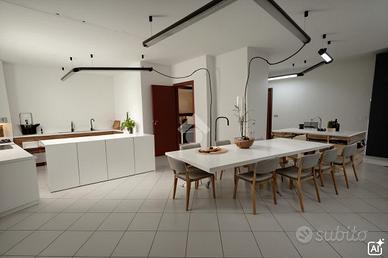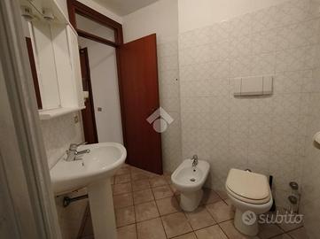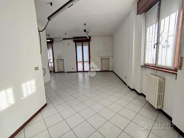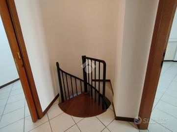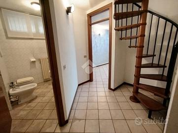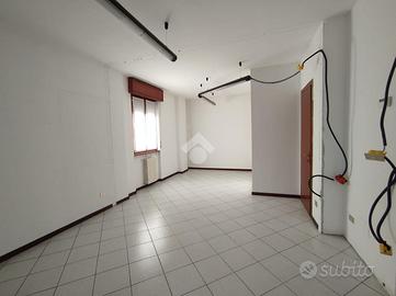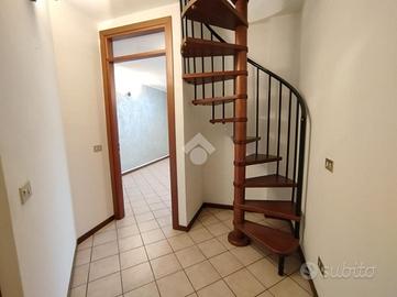 L'appartamento si trova al piano rialzato di una piccola palazzina servita da ascensore e interamente rifinita con mattone a vista sita nel pieno centro cittadino a pochi passi da tutti i servizi. La zona giorno è composta da un unico ambiente con cucina a vista e uscita su una comoda balconata mentre nella zona notte troviamo le due camere da letto ed il bagno finestrato. Tramite una scala di collegamento interna abbiamo accesso al piano sottostante dove troviamo un locale unico adibito a teverna con il bagno finestrato. A completare la proprietà l'ampio box singolo compreso nel prezzo di vendita. L'immobile è attualmente accatastato come ufficio e il cambio d'uso ad abitazione sarà a carico della parte venditrice. Possibilità di personalizzazione a parte.