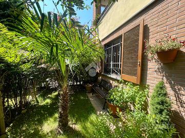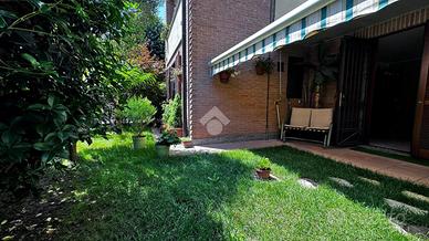 L'appartamento è collocato al piano terreno di una palazzina rifinita in mattoncino a vista sita in zona residenziale e tranquilla nelle vicinanze dell'Ospedale di Desio. Internamente presenta locali luminosi e ben distribuiti. L'ingresso è nel soggiorno con cucina a vista, il disimpegno separa il bagno, la cameretta e la camera matrimoniale con bagno privato e giardino esclusivo. Completo di impianto di irrigazione automatica, tende da sole ed inferriate. Il box è compreso nel prezzo. Riscaldamento autonomo.