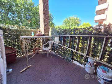 L'ingresso si apre su un luminoso soggiorno con accesso a un primo balcone, separato dalla cucina abitabile, anch'essa dotata di uscita su un secondo balcone. La zona notte, preceduta dal un disimpegno, ospita due camere da letto e doppi servizi, entrambi finestrati.