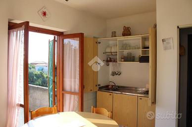 Alla soluzione si accede mediante un ingresso indipendente con giardino pavimentato di circa 45 mq; una scala esterna ci condurrà all'appartamento composto da una luminosa zona giorno con annesso a balcone vista mare.