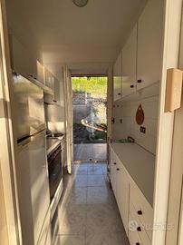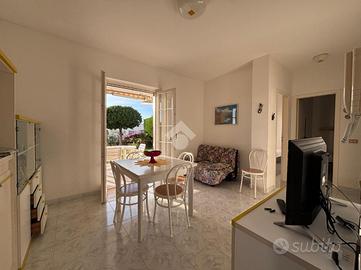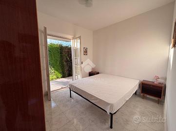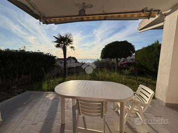La soluzione si presenta accogliente e funzionale, composta da soggiorno luminoso con accesso diretto al giardino vista mare, cucina separata anch'essa con uscita sul giardino, camera matrimoniale, camera doppia, bagno e comodo ripostiglio.