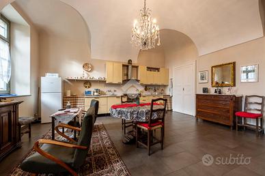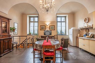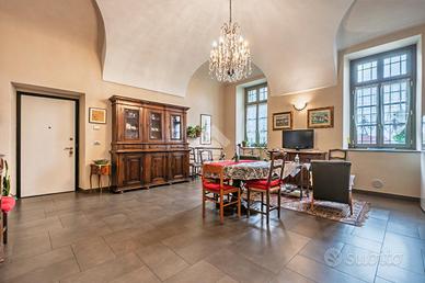 Nel cuore di Druento, all'interno della prestigiosa Villa Giovine, residenza signorile dei primi dell'Ottocento completamente restaurata, proponiamo in vendita un raffinato appartamento al piano terra, ideale per chi desidera vivere in un contesto elegante che unisce storia e comfort moderni. L'appartamento si inserisce in un contesto di grande valore architettonico, dove il fascino storico della villa si unisce a soluzioni moderne e comfort contemporanei, immerso nel verde del parco condominiale che circonda la proprietà. L'ingresso conduce a una luminosa zona giorno, con soffitti alti ed eleganti volte a botte che conferiscono carattere e ampiezza agli spazi. L'ambiente è ideale per vivere momenti di relax o accogliere ospiti, grazie alla sua atmosfera calda e accogliente. Dal soggiorno una scala a chiocciola conduce alla taverna, caratterizzata da volte con mattoni a vista e finestre, con predisposizione per il camino, lavanderia e secondo ingresso indipendente che collega direttamente ai box. Uno spazio versatile, perfetto come area relax o per cene conviviali. La camera matrimoniale, riservata e luminosa, dispone di doppio accesso, che permette di ricreare una seconda camera o uno studio, e si apre sul giardino privato piastrellato, perfetto per godersi piacevoli momenti all'aperto. Il bagno, finestrato, è completo di doccia e vasca separata. Dal soggiorno una scala a chiocciola conduce alla taverna, caratterizzata da volte con mattoni a vista e finestra, con predisposizione per il camino, lavanderia e secondo ingresso indipendente che collega direttamente ai box. Uno spazio versatile, ideale come zona relax, studio o sala hobby, con possibilità di personalizzazione secondo le esigenze. L'appartamento è dotato di riscaldamento a pavimento. Completano la proprietà un box di 30 mq e un posto auto assegnato, che assicurano praticità e comodità per la vita quotidiana.