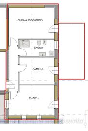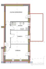 L'appartamento è composto di soggiorno con angolo cottura, due camere da letto, bagno finestrato e terrazza. E' caratterizzato da pregiate finiture quali: isolamento a cappotto, serramenti in pvc con vetrocamera e tetto in lastre di Pietra di Prun con lavorazione tipica della Lessinia.