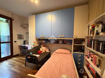 L'immobile, accessibile dal vano scala che serve solo quattro unità, presenta zona living open-space, ripostiglio con attacchi per la lavanderia, zona notte con due camere da letto, di cui una con cabina armadio, e bagno con vasca.