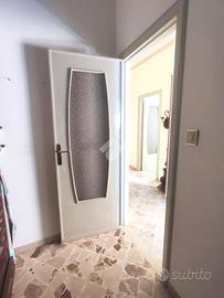 La pavimentazione è in marmette, gli infissi interni sono in legno tamburato, quelli esterni sempre in legno con serrande in P.V.C., gli impianti idrico ed elettrico sono originari e funzionanti, quello del bagno è stato rifatto, in sostanza tutto l'immobile è tenuto in buono stato, con rifiniture degli anni 60.