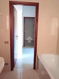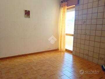 L'immobile, rientrato rispetto al filo stradale grazie ad un cortile condominiale, è un tre locali e si compone quindi di comodo ingresso, soggiono, camera da letto matrimoniale, cameretta doppia, cucina abitabile e bagno, il tutto ben disimpegnato. Affacciandosi dal retro ci si trova invece al primo piano e quindi abbiamo un lungo balcone che serve a raggiungere una grande veranda coperta che sul prospetto principale è chiusa a vetri. Detto spazio rappresenta un ambiente versatile, da potere sfruttare come appendice dell'abitazione, ottimo per chi cerca spazi esterni da vivere o semplicemente vuole ospitare anche i suoi amici animali.