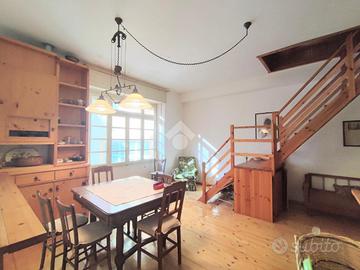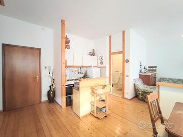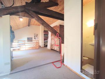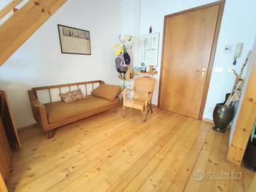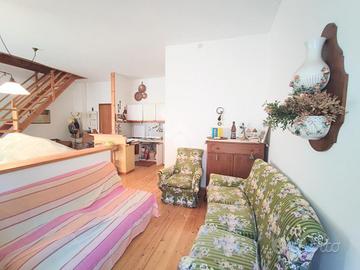 L'ingresso è sul soggiorno completo di angolo cottura e bagno con la doccia. Tramite la scala a vista si può comodamente accedere al piano sottotetto composto da due locali comunicanti adibiti alla zona notte oltre ad un bagnetto di servizio.