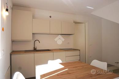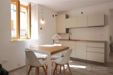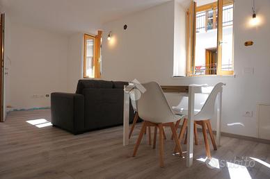 In piccolo contesto in fase di ultimazione proprio in pieno centro, elegante appartamento disposto su due livelli così composto: a primo piano stanza, soggiorno-cucina con scala per piano terra con seconda stanza, disbrigo, bagno finestrato e secondo ingresso. Completa l'unità una cantina a piano terra. Posizione centrale e comoda a tutti i servizi. Posti auto comunali nelle immediate vicinanze. Completamente ristrutturato. Ultimazione lavori: 2025. Agevolazioni fiscali sull'acquisto.