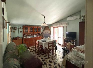 L'appartamento è composto da: soggiorno con balcone, cucina ,due camere matrimoniali e bagno. Al piano seminterrato cantina di 4 metri quadrati piu' posto auto esterno condominiale.