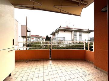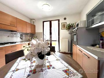 Ingresso, soggiorno e angolo cucina entrambe con affaccio su balcone e terrazzino loggiato.