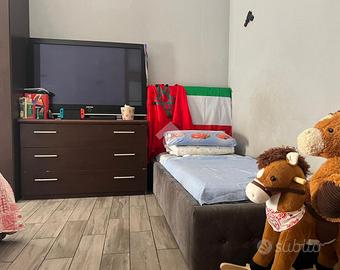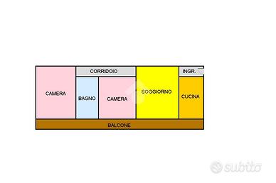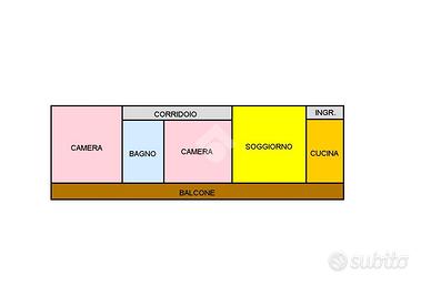 La zona giorno si apre su un ampio e luminoso soggiorno con cucinotto separato, nella zona notte invece troviamo due camere da letto matrimoniali ed un bagno finestrato con doccia.
