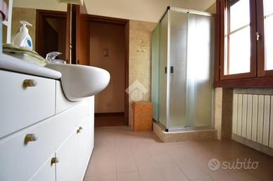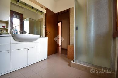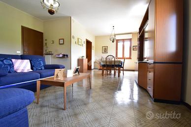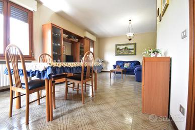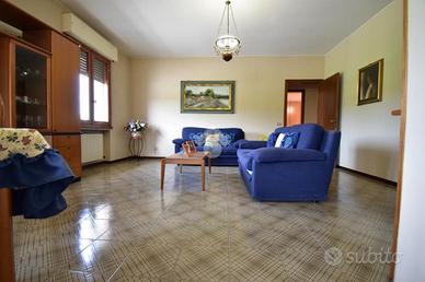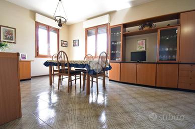 FELINO: A 2 km dal centro paese, nella frazione di San Michele Gatti, in un contesto tranquillo, proponiamo ampio appartamento posto al piano rialzato di un'abitazione bifamiliare. La soluzione è così composta: l'ingresso si apre su una grande e luminosa zona giorno con doppia esposizione (sud-ovest), questa in parte adibita a soggiorno ed in parte a zona pranzo. La zona giorno viene completata da un cucinotto separato. Tramite il disimpegno accediamo alla zona notte, dove troviamo due camere da letto matrimoniali, di cui una molto spaziosa; un bagno finestrato di generose dimensioni, dotato di doccia ed un comodo ripostiglio. L'immobile è dotato di: doppi vetri, infissi in legno, tapparelle e zanzariere. Inoltre, sono presenti due posti auto nell'area cortiliva comune retrostante. Assenza di spese condominiali e riscaldamento autonomo.