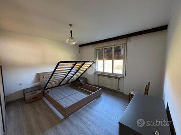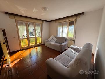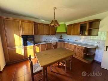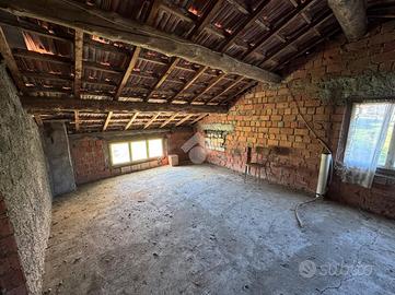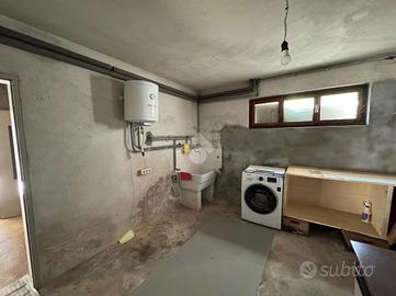 Al piano terra si trovano la cantina, la centrale termica e due garage. Salendo al primo piano, raggiungibile sia dall'interno sia da una scala esterna, si accede alla zona abitativa composta da cucina abitabile, soggiorno, bagno e due camere matrimoniali. Sia il soggiorno sia una delle due camere affacciano su un terrazzo che dona luminosità agli ambienti e uno sfogo esterno che affaccia sulla proprietà.