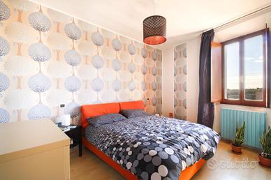 La zona notte, ben separata grazie al disimpegno, comprende la camera matrimoniale, una cameretta ed un bagno finestrato con box doccia.