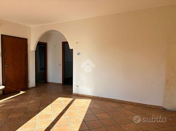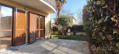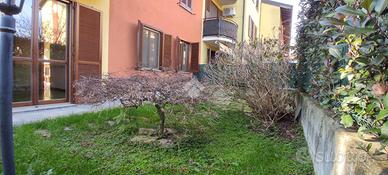 FERNO. In contesto residenziale tranquillo e ben curato, all'interno di una palazzina di recente costruzione servita da ascensore, trilocale al piano terra caratterizzato da ambienti luminosi e da un ampio spazio esterno privato.