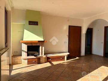 L'ingresso conduce direttamente alla zona giorno, ampia e accogliente, composta da angolo cottura e soggiorno con camino in muratura, ideale per creare un'atmosfera calda e conviviale. Da qui si accede all'area esterna pavimentata, perfetta per pranzi all'aperto, momenti di relax o per chi desidera uno spazio per animali domestici. Il giardino, si sviluppa lungo gli altri lati liberi dell'abitazione.
