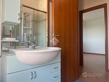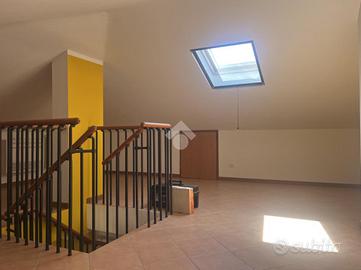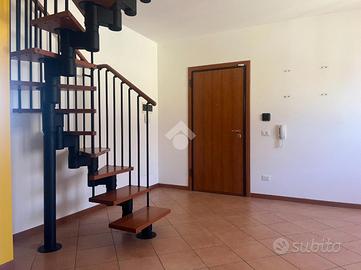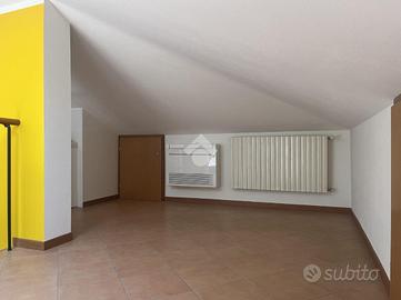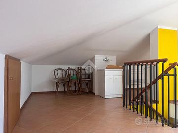 L'abitazione si apre su un soggiorno luminoso, con accesso alla cucina abitabile, al bagno con balcone, alla camera da letto matrimoniale e a una seconda camera. Una comoda scala collega il soggiorno al sottotetto di proprietà, completamente rifinito, perfetto per essere utilizzato come studio, zona relax o pratico ripostiglio, zona multiuso.